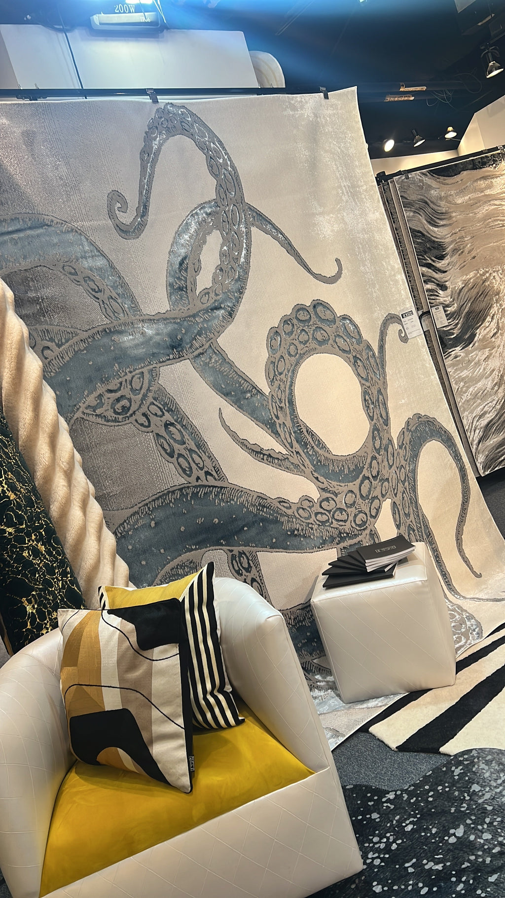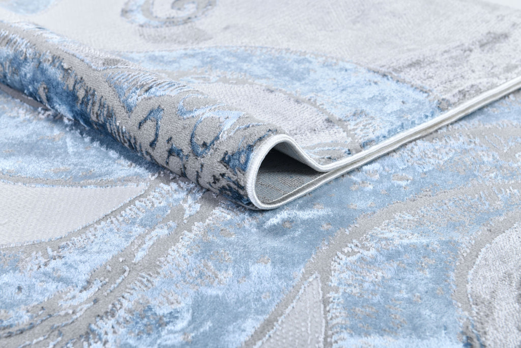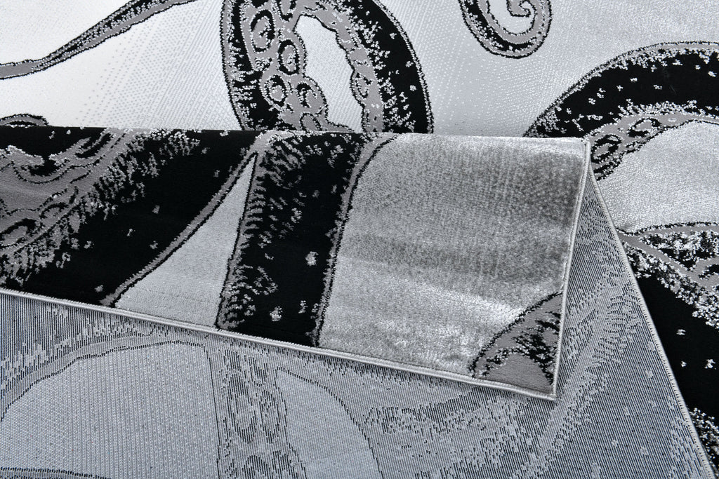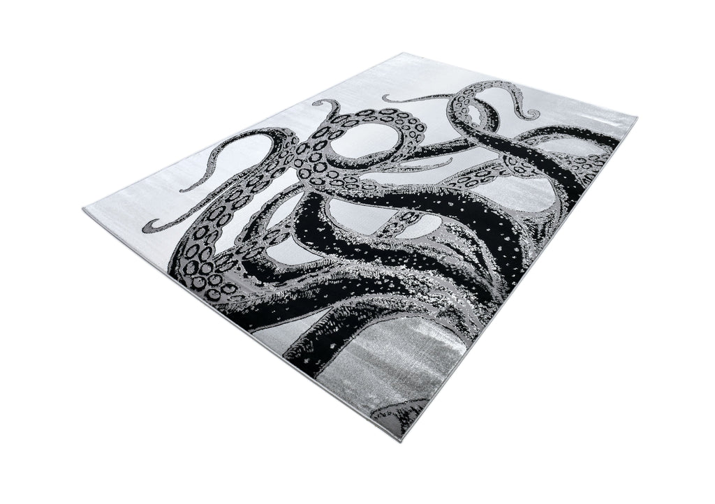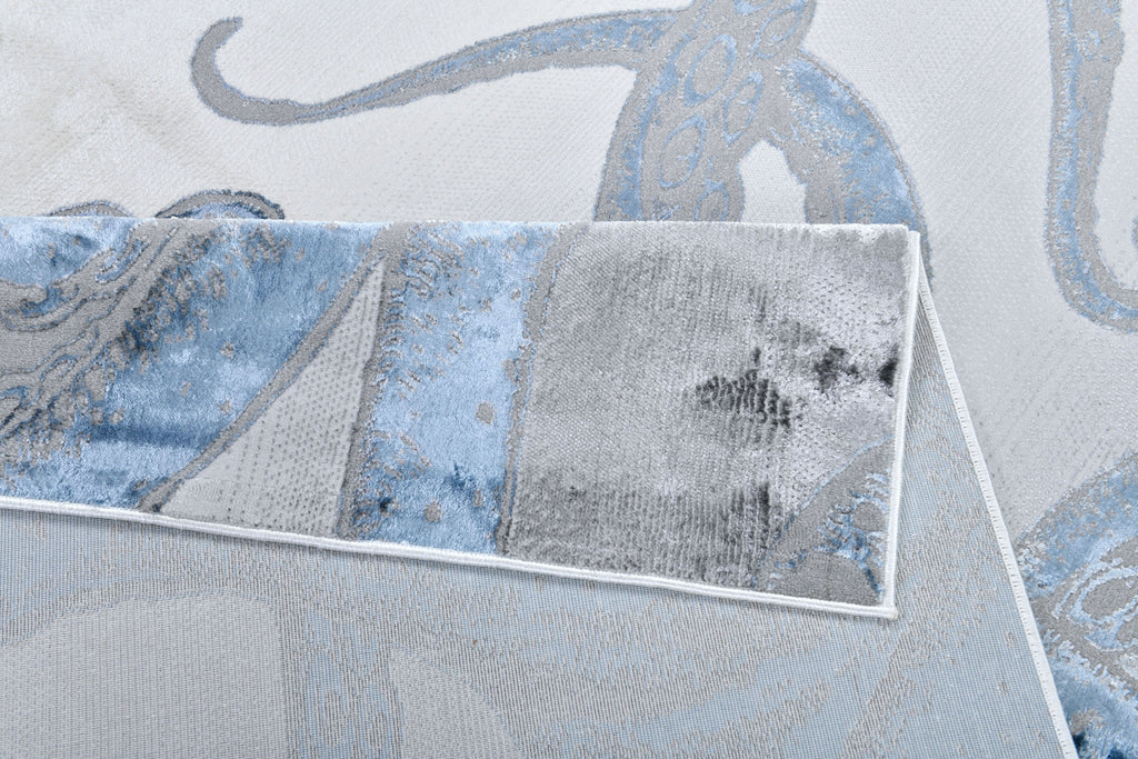 Soft-Touch Light Grey Rug Featuring Metallic Octopus/Tentacle Design in Sheer Black or Blue - Z339A (POL805)