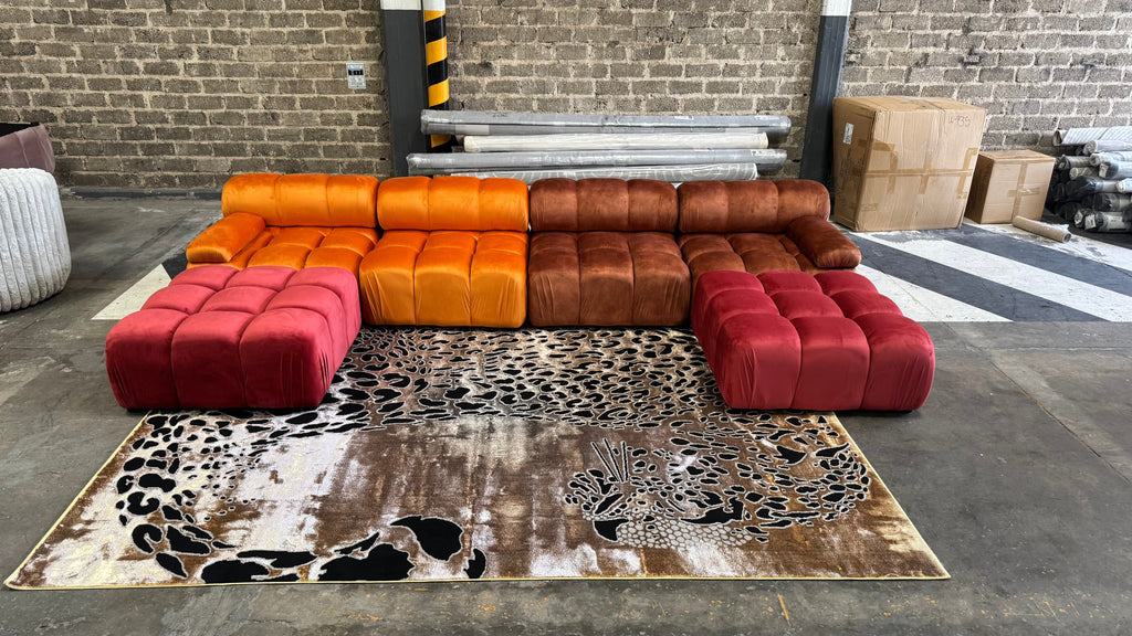 "This stunning machine-loomed rug collection is crafted from high-quality polyester shiny yarn, ensuring a luxurious sheen that adds a designer touch to any room. The soft texture makes it incredibly comfortable to the touch, while the cotton backing enhances durability. Its foldable design makes it easy to store and maintain, combining style and practicality. Perfect for adding an elegant, soft, and modern aesthetic to your space."