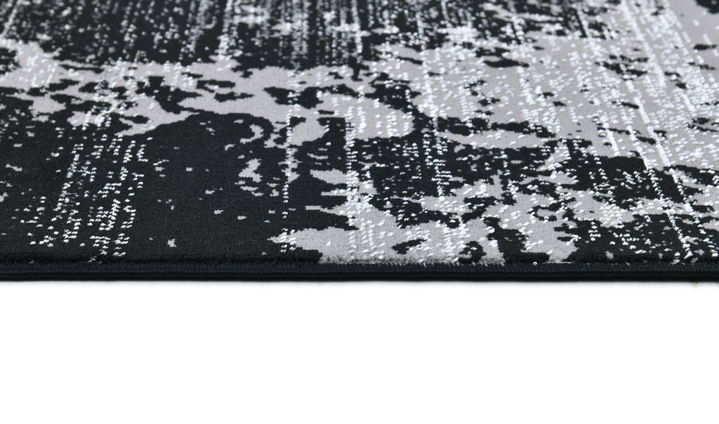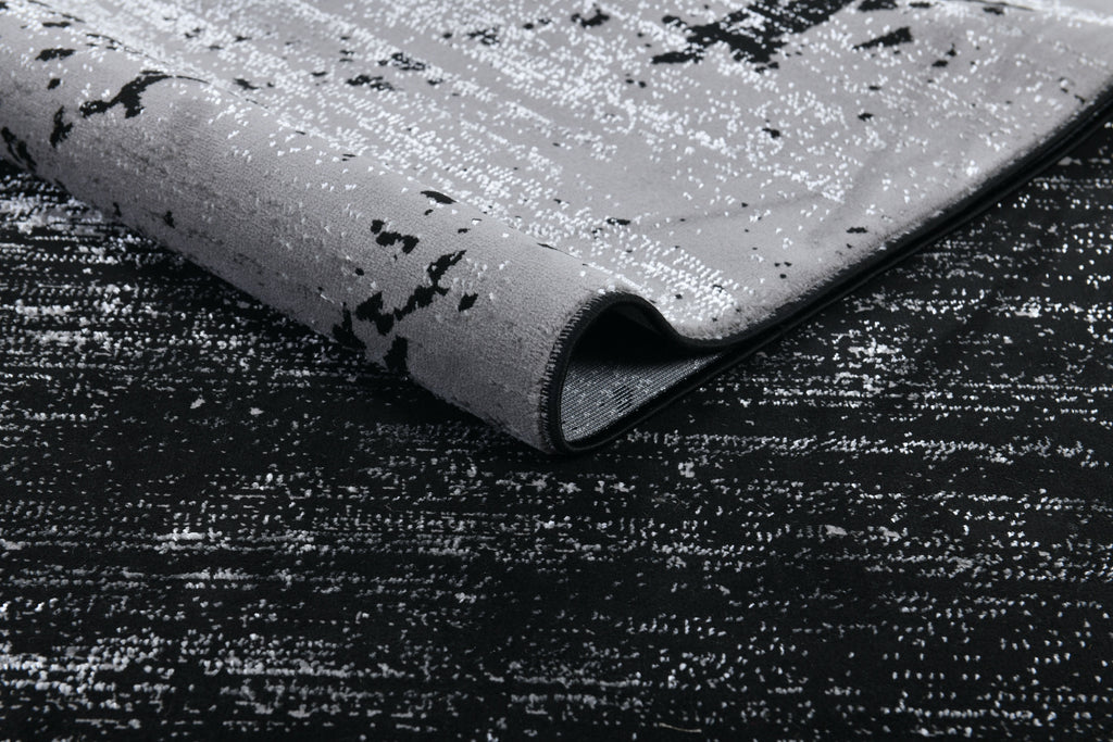 Contemporary Area Rug - Abstract Design in Soft Black with a Splash of Metallic Silver - Z408A (POL821)