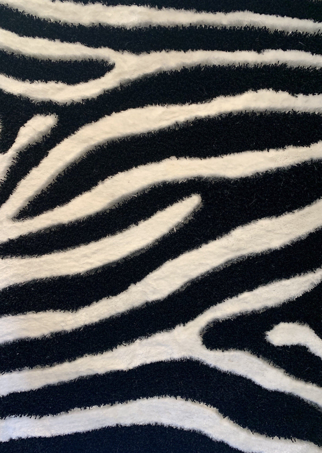 Zebra Animal Print Black & White Shag Long Pile Area Rug/Carpet